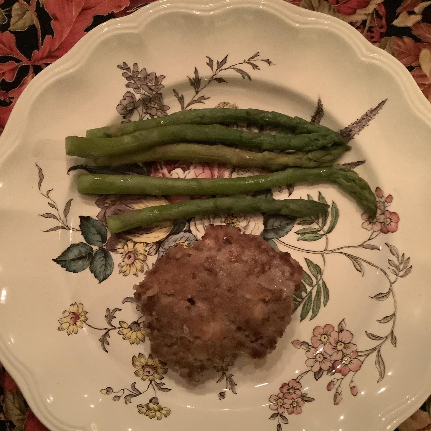 | 3 oz asparagus or 2 oz broccoli | Cook vegetable and plate with the cutlets. |