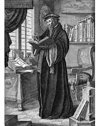 Jean Calvin [aka Jehan Cauvin] was born on Monday, July 9, 1509. Little did his parents in the town of Noyon, Picardie know of the tremendous impact their son would have on their country’s society and religious life. Destined for the clergy, Calvin grew up in the shadow of Martin Luther’s ideas to reform the Church. His father’s falling out with the local church elders steered young Jean to the law. In the 1530s, Calvin grew into a new theology, a synthesis of the ideas of Luther, Zwingli, and other leaders of Protestantism. Through studies in Basel, Switzer-land and Strasbourg [then in Germany] Calvin went on to organize and codify the new church. From the Cathedral of Saint Pierre in Geneva [where you can still see ‘Calvin’s Chair’], he oversaw the training of priests, the writing of liturgy, and the spread of the Reformation through his homeland. For the next hundred years, France was torn apart by religious wars as the Protestant Huguenots fought with the Catholics to worship as they pleased.