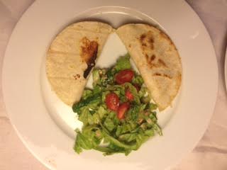 Quesadillas : 295 cal 9 g fat 2.7 g fiber 19 g protein 31.4 g carb 211.5 mg Calcium GF These are great. We return to this recipe often for a quick, enjoyable meal. And you can prepare and cook them ahead! Wrap in foil, and reheat them later. Thanks to Suzy M. for that tip. See For Gunn & Grommet for recipe details.