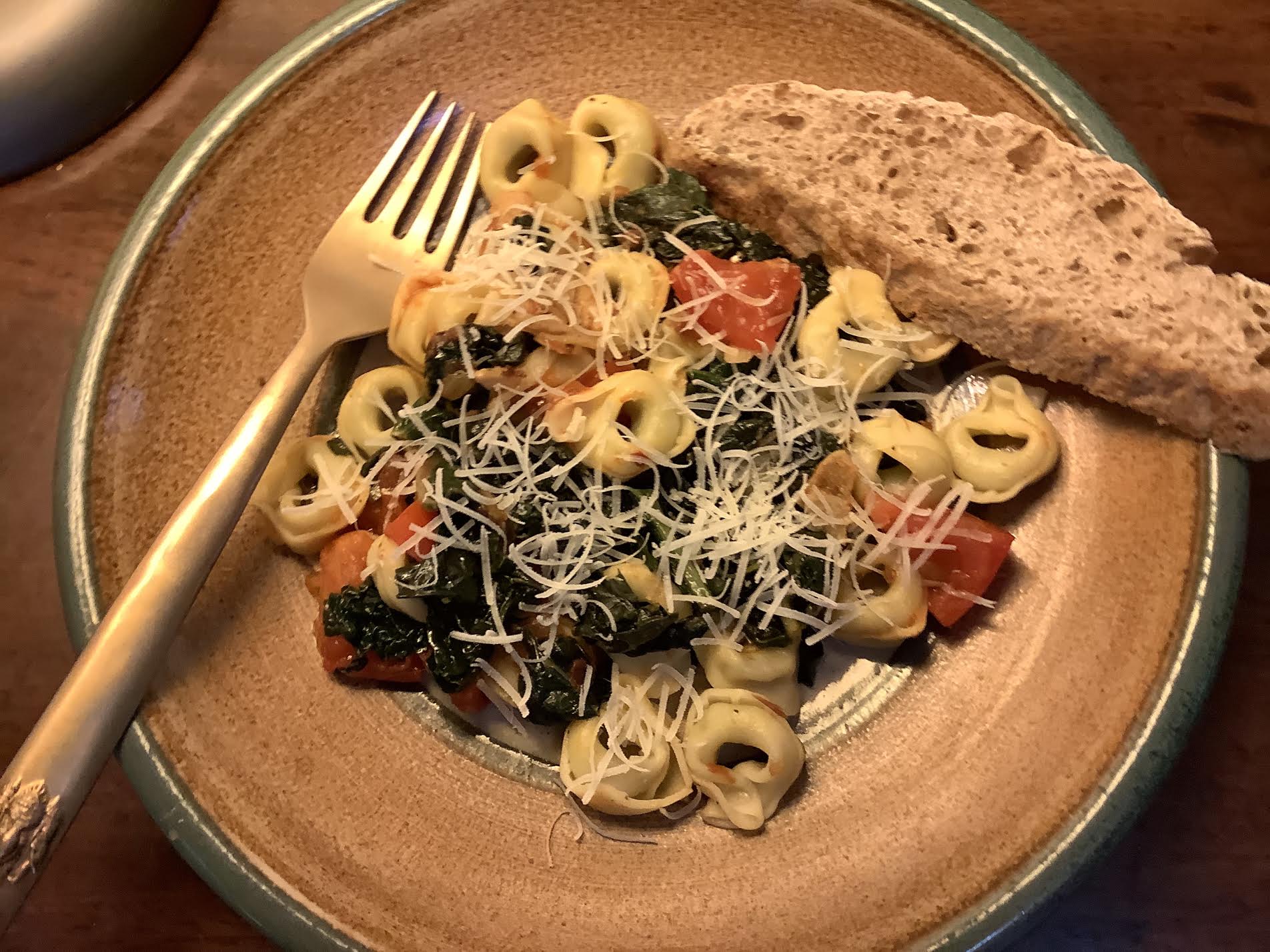 Tortellini with Black Kale: 209 calories 9 g fat 3.5 g fiber 10 g protein 24 g carbs [7.4 g Complex] 231 mg Calcium PB Packaged, dried tortellini is a handy item to have in the pantry. It makes for a fine Tuscan meal when pared with Black Kale. ‘Black Kale’ is also called ‘Dinosaur Kale’ or ‘Tuscan Kale.’ The recipe is from ‘thekitchn.’ Another very simple meal with a lot of appeal. An ounce of bread could be added while keeping the calories in line. See S.A.D. for recipe details.