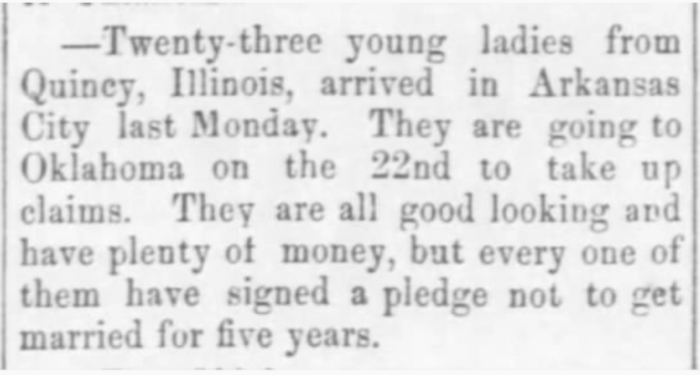 At noon on April 22, 1889, the Oklahoma Land Rush began with the firing of a gun. That was the signal for the thousands of people — on horse-back, in wagons, whole families, or single people — to charge across the prairie in what is now Oklahoma to find a plot of land and claim it. The land was part of the enormous Louisianna Purchase of 1803, but had remained “undeveloped” and was considered “unassigned” and “unpopulated.” [No one asked the Plains Indians about that. Neighboring lands were already the home of Indigenous Peoples who had been deported there from Eastern States]. Ever since the end of the Civil War in 1864, people had clambered to be able to settle the Oklahoma land. Their noisy lobbying earned them the name ‘boomers.’ The Unassigned Lands had been divided into 160 acre parcels. Towns and rail lines had been sited and partially developed. The people who did that work, who were already inside the territory, along with cheaters who sneaked in early, were called ‘sooners.’ When the signal went off, the 50,000 people who had waited on the Kansas border streamed in. Among them were 23 young women from Illinois, mentioned in the article above. By the end of the day, 11,000 homesteads had been claimed. Towns sprang up overnight, since some boomers wanted house lots and shop locations. Land Rush or Land Grab? African-Americans were put at the back of the line for the Rush. Law suits went on for years as sooners were sued and removed from their property. In August of 2020, the US Supreme Court settled a suit that determined where the “Indians” had jurisdiction in certain locations, an outshoot of the Oklahoma Land Rush. The nickname of Oklahoma is The Sooner State — no longer a slur, the word now embodies the spirit of the state. The abbreviation is ‘OK’ and the state was settled by boomers, so I guess they all were OK Boomers, weren’t they?
