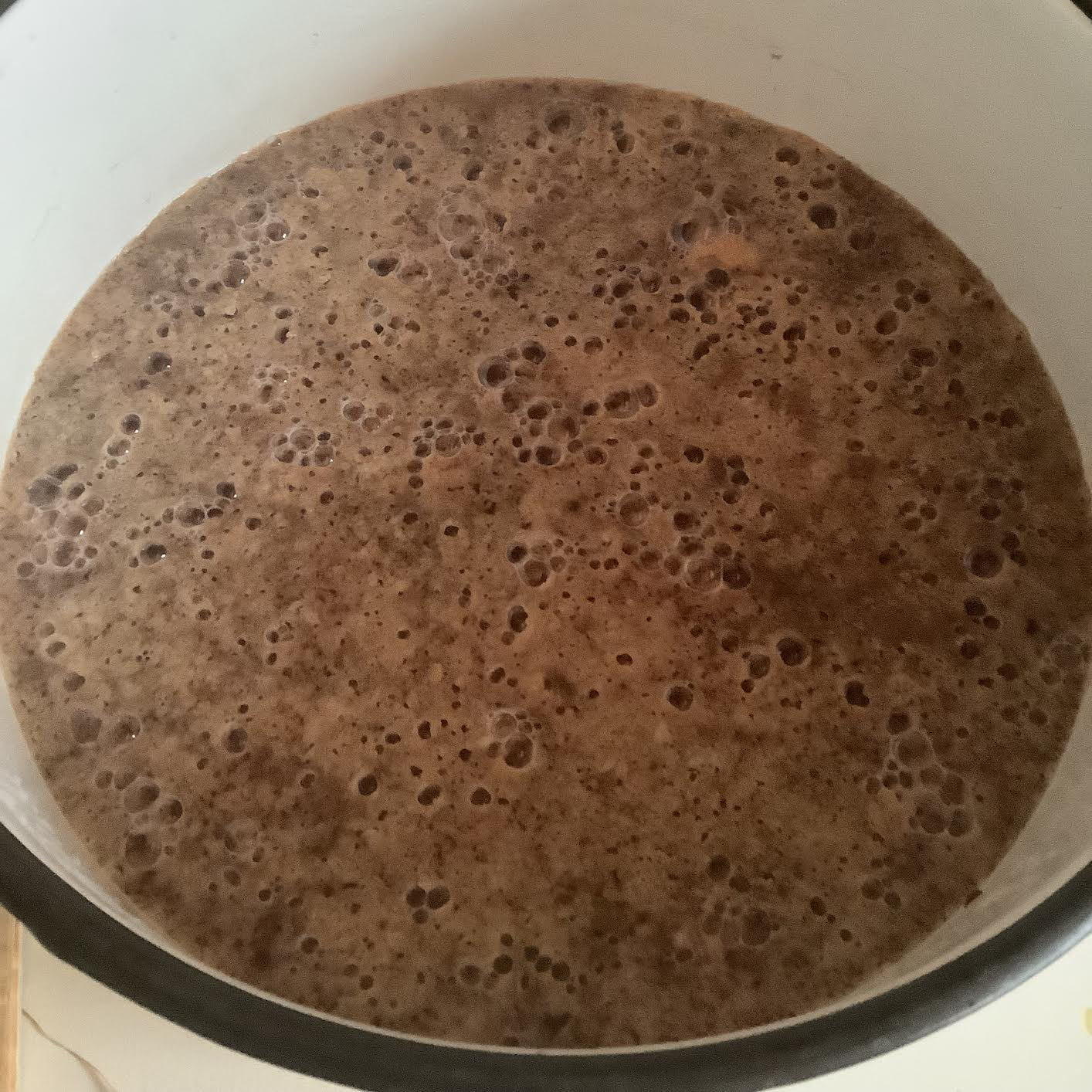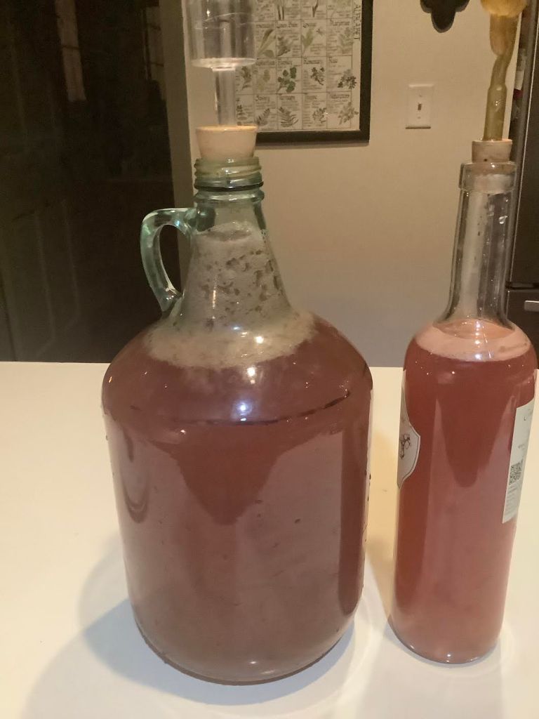 | Starter bottle from previous blog | The bottle contents should be bubbly on the top. If not, gently shake it to see if bubbles rise to the top. This tells you that the yeast is activated. |