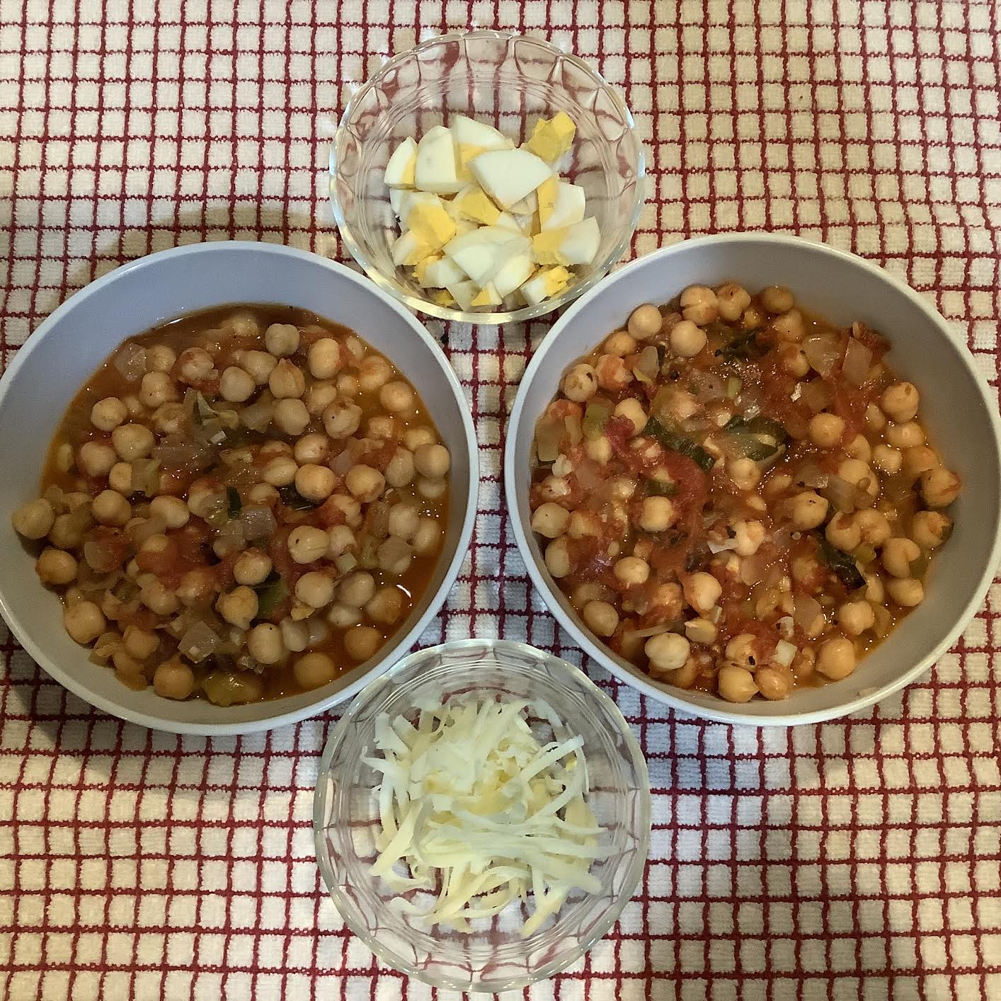 Chickpea Ragout: makes 2-1/4 cups PB GF This is from Jacques Pepin’s Fast Food My Way As written below, this is NOT a vegetarian meal, since it contains chicken stock. With vegetable broth, it becomes vegan and vegetarian.