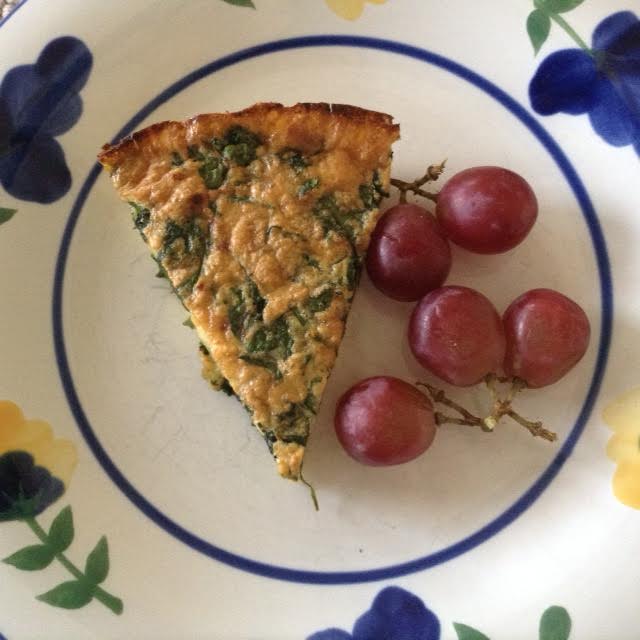 Spinach Fritatta: 131 calories 7 g fat 2 g fiber 11 g protein 6.6 g carbs [6 g Complex] 127 mg Calcium NB: Food values shown are for the ScrOmelette and fruit only, and do not include the optional beverages. PB GF Long an item in food magazine brunch articles, it was time to take frittata to the Fasting table. Wait no more: this is delicious and filling.