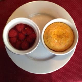 Salsa Chicken Bake: 281 calories 6 g fat 2.4 g fiber 20 g protein 29 g carbs [25 g Complex] 298 mg Calcium NB: The food values given above are for the egg bake and fruit only, not the optional beverages. PB GF Salsa for breakfast? Porque no?