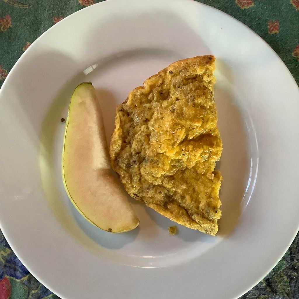 1 two-oz egg 2.5 Tbsp/0.7oz haggis 1 oz pear Optional: 5 oz fruit smoothie or berry-yogurt smoothie [88 calories] Optional: blackish coffee [53 calories] or blackish tea or mocha cafe au lait[65 calories] or lemon in hot water