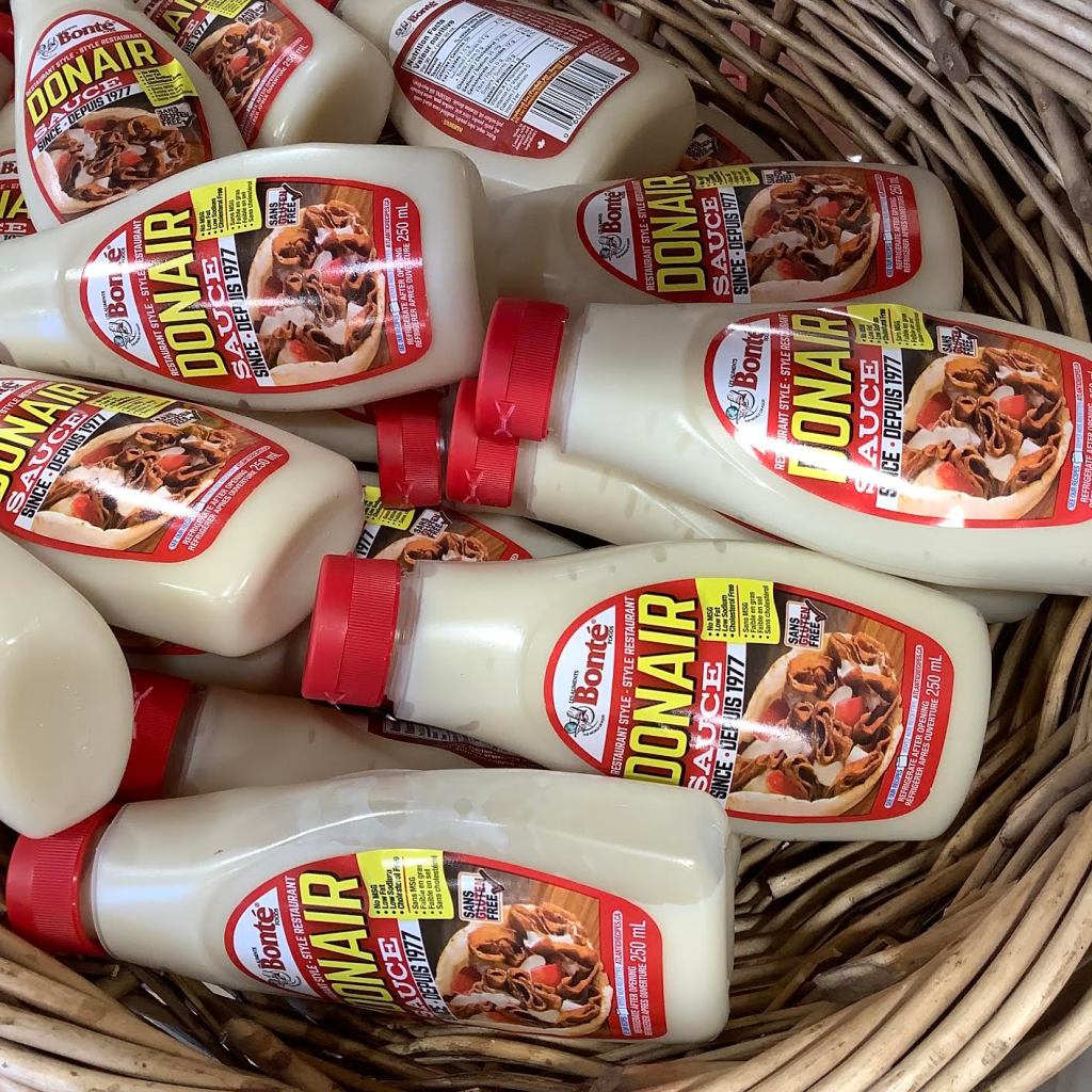 +’My Donair Sauce‘ makes ~ 2 Tbsp, enough for one serving 2 Tbsp vanilla yogurt 2 tsp cider vinegar 2 tsp garlic powder Stir together and put in a side dish for serving.