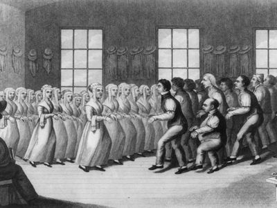 A daughter was born to John and Ann Beswick Lees on February 29, 1736, on Toad Lane Road, Manchester, England. John Lees worked as a blacksmith by day and as a tailor by night to keep his family fed. The parents, devout and respectable people, named their daughter Ann. Illiterate, like other girls of her social class, she started working in the textile mills at age eight. When she was 20 years old, Ann became the cook at a local hospital/insane asylum. This was a time of religious revival in Manchester, as well as the start of the Industrial Revolution. Ann’s father married her to his apprentice, Abraham Standerin/Stanley, when she was 25. Her marriage either contributed to or reinforced her aversion to sex, which she saw a sinful. An off-shoot of the Quaker sect had been formed by Jane Wardley, and Ann became an enthusiastic member. Their worship services began with silent reflection and ended with mass shouting, writhing, and dancing, hence their nickname “Shaking Quakers”. Members of the group were often arrested for bursting into non-Quaker church services to deride the congregants. One time, while Ann was imprisoned, she had a vision that she was the embodiment of Christ and that she would found a new church in the new land of America. With eight adherents, she sailed for New York in 1774. The group worked there to earn money to buy land, and in time moved upstate to Niskayuna. On the weird Dark Day of 1780, Mother Ann began to spread her egalitarian ideals of communal living without sex; of working for the common good while giving “hands to work and hearts to God”. In 1781, she undertook a tour of Connecticut and Massachusetts along with some followers including her brother William. They were met with curiosity, contempt, and sometimes violence — but their proselytizing resulted in the establishment of 8 Shaker Villages. Due to injuries incurred from mobs on their tour, William died within in 1784, and Mother Ann a few months later at age 48. In time, 6000 Shakers held her in reverence as their sect grew. She is buried at the Shaker Cemetery in Watervliet, New York.