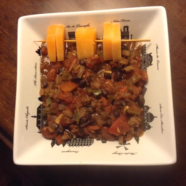 Bison Chili: per cup – 136 calories… 3 g fat… 5 g fiber… 13 g protein… 14.5 g carbs… 57 mg Calcium… PB GF  This chili is based on my mother’s recipe. Using bison meat gives good flavor to this classic. HINT: makes 4 [four] one-cup servings