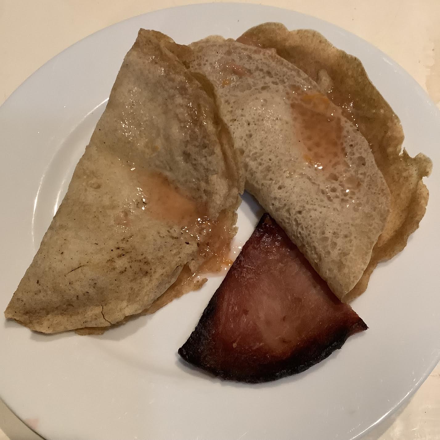 | ½ oz ham, pan-fried | Serve with the ham and your beverage of choice. |