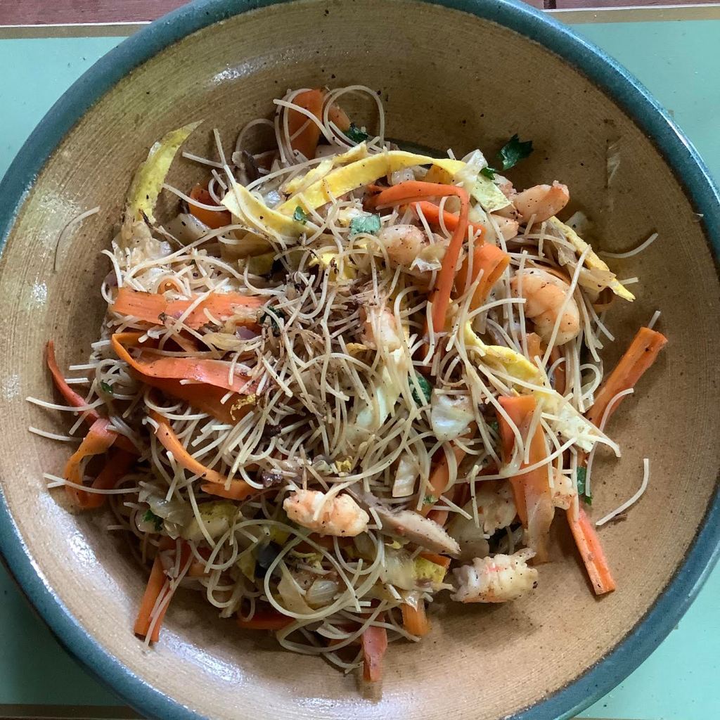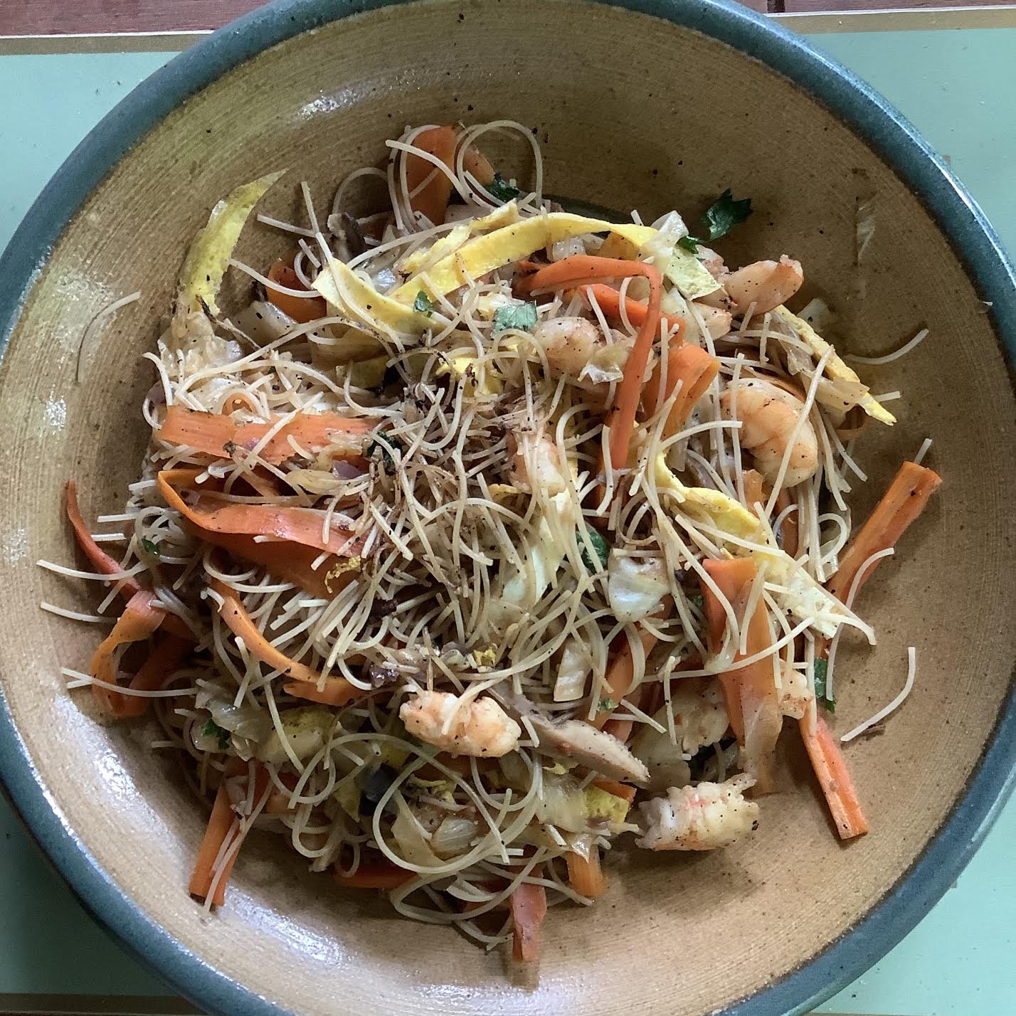 Taiwanese Shrimp Meefun: 270 calories… 6 g fat… 3 g fiber… 19 g protein… 33.6 g carbs… 84.4 mg Calcium… PB GF This recipe is from Susan Livia New York Times Cooking. Some recipes call for dried shrimp, some for smoked tofu. For convenience, I used frozen shrimp. HINT: Recipe is enough for two [2]. Enjoy the other half of the recipe warm or cool for lunch or dinner later this week.