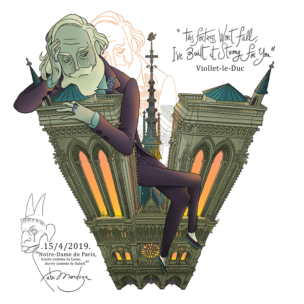 Notre-Dame de Paris was in ruins, and decisions had to be made. Should the old cathedral be torn down? This was not April, 2019, when the church went up in flames. This was 1842. Notre Dame then was not in good shape since its building 682 years before. Worse, the angry citizens really trashed the place during the French Revolution. But now it was the age of Romanticism, when old things were of value and people, influenced by Victor Hugo’s 1831 novel The Hunchback of Notre-Dame [in French, Notre-Dame de Paris] had a new interest in preserving the church. Enter Eugène Emmanuel Viollet-le-Duc. He was born in Paris on January 27, 1814, into a family of architects. From his youth, Eugène was interested in how buildings were put together. He learned from architects, from builders, from traveling the country to visit historic places, from sojourning in Italy. When he was only 28 years old, Viollet-Le-Duc and colleague Jean-Baptiste Lassus were given the chance to rescue Notre-Dame. Having restored another church, Le-Duc had an idea of how to proceed, which was handy since Lassus died soon afterward. Le-Duc’s idea of restoration was not to put a structure back the way it was before. He wrote: “To restore a building is not to preserve it, to repair, or rebuild it; it is to reinstate it in a condition of completeness which could never have existed at any given time.” In other words, make it the way Le-Duc, an ardent medievalist, thought that it ought to be. He added windows and ornamentation. Most famously, he created the spire over the transept and the Chimerae on the roof. Through several changes in national government, Le-Duc continued to find favor and work ‘restoring’ buildings. In addition to Notre-Dame, he worked on nine other churches, two town halls, six castles, and the walls of Carcassonne. Le-Duc’s work and writings influenced generations of architects and artists. He died in 1879.