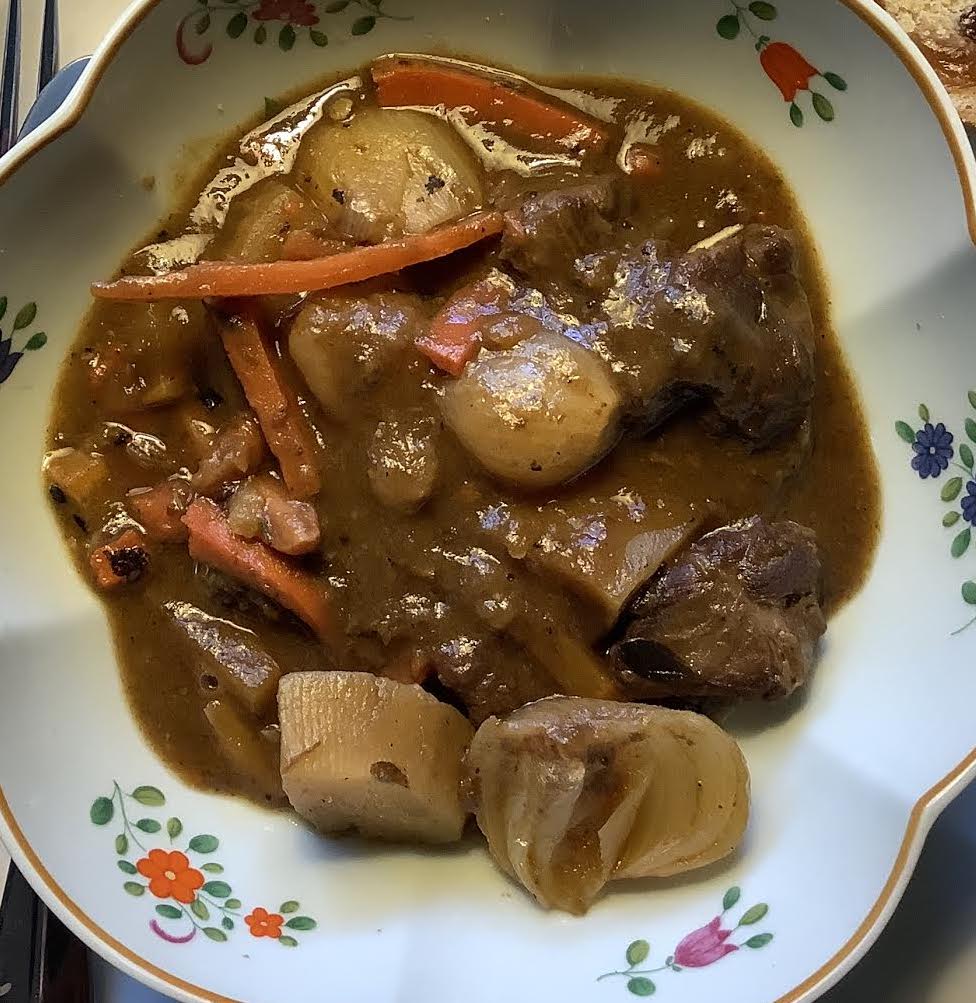 For breakfast, we will have a non-traditional version of the usual US meal for the day: corned beef and cabbage. For dinner, a lamb stew.  The lamb stew is in honor of Patrick’s days as a shepherd, but the recipe has a French influence, perhaps like the saint himself.  Hold the Soda Bread and green beer for another day
