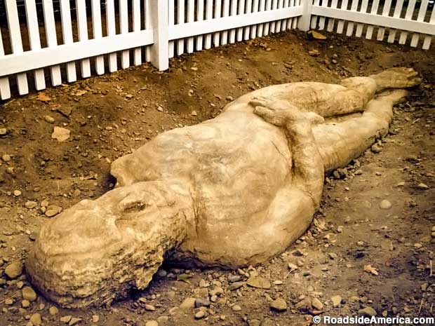 People naturally seek the unusual. They crave excitement to relieve their everyday routine. In 1868, people in Cardiff, New York State had a real ‘nine-day wonder’ right in their own town. George Hull was in a huff. As an atheist, he argued with a Methodist minister about the veracity of the Bible. When the minister quoted a verse stating that in olden days there were giants, Hull decided to test the public’s gullibility. He secretly commissioned a sculpture to carve a 10-foot high statue of a man. [Legend says that Hull was the model for the nude male.] Then he had it buried on the farm of his confederate, William ‘Stub’ Newell in Cardiff. On October 16, workers digging a well “discovered” the statue. It was proclaimed to be a ‘petrified man’ from ancient times — perhaps one of the giants mentioned in the Bible! As news got out, folks came from far and wide to view it. Even after Farmer Newell started charging 50-cents to see it, people still came. Some thought it was a statue carved by a lost race. Others said it was carved in the 1700s by a Jesuit missionary preaching to the Algonquins. A scientific analysis by renowned paleontologist Othniel C. Marsh proved it to be modern, rather than thousands of years old, and that it was crudely carved from the mineral gypsum. Nonetheless, the Cardiff Giant still attracted throngs. Circus man and huckster P.T. Barnam offered to buy it for his sideshow, but was denied. So he had a copy made and put his fake duplicate on display instead of the genuine fake. Hull eventually admitted to the hoax, but nobody cared — the Cardiff Giant had become part of the folklore of New York State and the world. The original is on display at the Farmer’s Museum in Cooperstown, New York. Barnum’s faux fake is viewable at Marvin’s Marvelous Mechanical Museum near Detroit, Michigan.