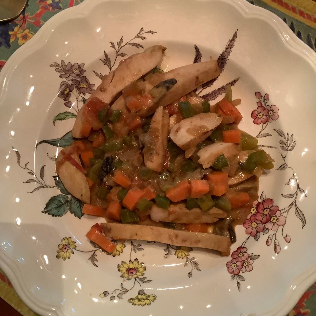 | 3 oz rutabega/turnip, cubed—2 oz carrot, diced—3 oz parsnip, diced—3 cups chopped cabbage—–½ tsp mace—½ tsp dry mustard— 1 Tbsp caraway seed —salt & pepper—3 cups water | Add these to the pan. Pour in water to cover the vegetables. Cover pan and simmer about 1 hour or until vegetables are tender.Taste for seasonings. |