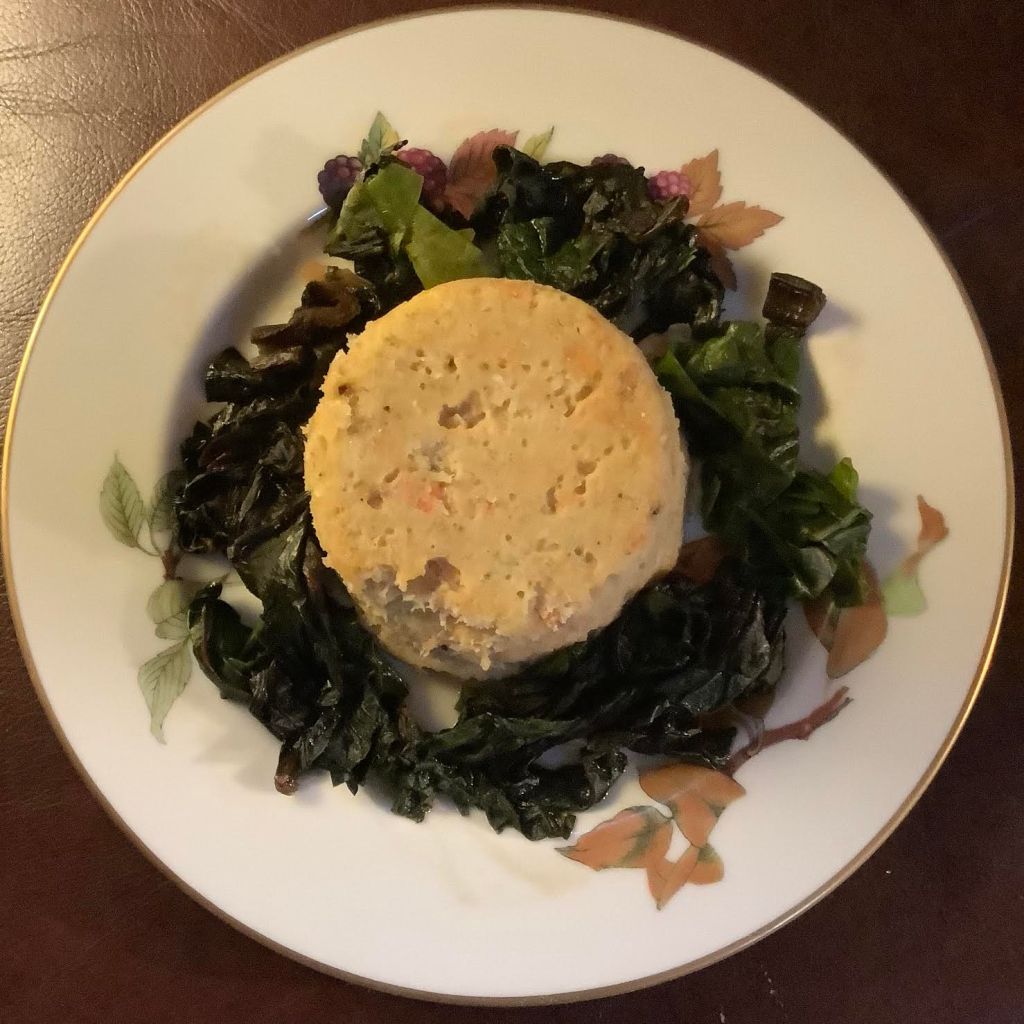 Bake Lorraine: 180 calories… 11 g fat… 1 g fiber… 12.5 g protein… 7.6 g carbs… 193 mg Calcium… NB: The food values shown are for the egg bake and the fruit, not for the optional beverages. PB GF You’ve heard of Quiche Lorraine? Well, here it is, crustless, with all the flavor intact. Very do-able for breakfast. Make sure your next meal has lots of fiber, as this has next to none.