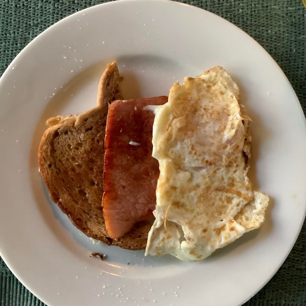 | ½ oz ham, pan-fried | Serve with the ham and your beverage of choice. |