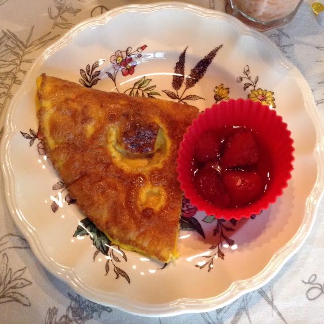Combine the spinach, cheese, and seasonings. Whisk in the egg and pour into a lightly-oiled or spritzed ramekin. Bake at 350 degrees F. for 12-15 minutes. Meanwhile, prepare the beverages of your choice and plate the fruit. What a nice way to start the day.