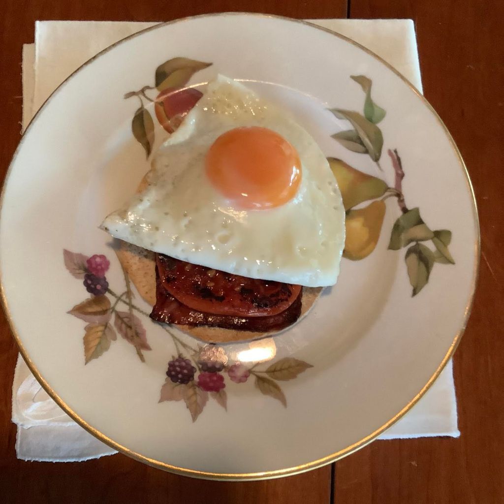 Warm the meat or not. Cut the fruit in bite-sized pieces. Plate the meat, egg, and fruit. Brew your beverages of choice. Sit down and relax with your easy anytime breakfast.