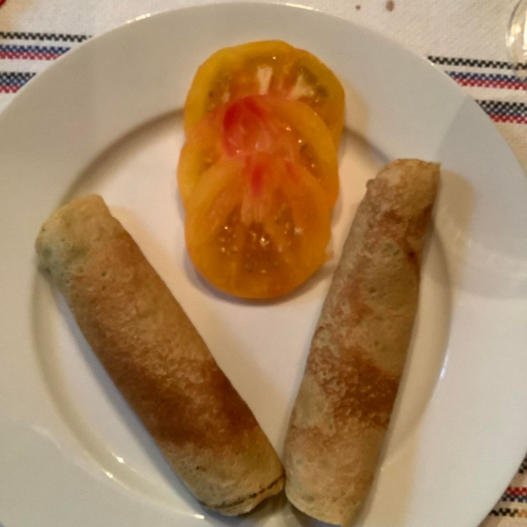 | 1 cup watermelon in 1” cubes—-½ cup heirloom or ripe tomatoes—-½ cup seedless cucumber | Cut tomatoes in 1” cubes. Cut cuke in ½” cubess. In a big serving bowl, combine let sit. Drain off any excess liquid. |