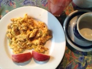 If it is cold outside where you are, consider this scramble from warm Provence for breakfast and a hearty soup for dinner.