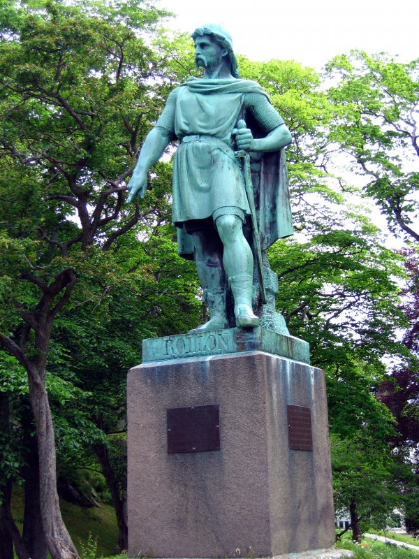 On 11 July, 911 AD, we find ourselves in the region of Eure in the lower Seine valley. The Viking Rollo [Hrolf to his family] and his merry band of mauraders had made a sweet deal with the locals: you French give us the lands around the lower Seine River and the coastline, and we’ll stop raiding you. King Charles the Simple and his advisors agreed to the deal, and Rollo, a giant of a man who was so large that no horse could hold him [hence his nickname “The Granger” or Walker], became Duke of Normandy. The day almost ended badly. The haughty King Charles told his new vassal to kiss his foot. The unbowed Rollo refused but told one of his henchmen to do it for him. The henchman, unwilling to bow to honor the king’s foot as he sat astride his horse, instead grabbed the foot and raised it to his lips, almost tipping the king over! Rollo was generous to his followers, and gave much land to his half-brother, Bernard, called ‘The Dane’ [even though he was from Norway]. Bernard is my direct ancestor and he settled the town of Thury which is named after his battle cry: Thor-aie! The family name became ‘Harcourt‘, also a place name in Normandy and a well-known name in England. Rollo’s great-great-great-grandson became William the Conqueror, but that’s for another day. Once in France, these Vikings became known as “Normans”, short for “North-men”, and the land they were given became “Normandy”.
